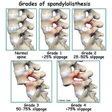 The flip side of the coin is keeping your lower back in a stable position as we press overhead, perform pushups and work on toes to bar. When I was competing more often in strongman I'd see a lot of athletes with something called spondylolisthesis. Sounds bad right? Well it is. As you can see in the picture you've got a slippage of your vertebrae forward on the vertebrae below it.